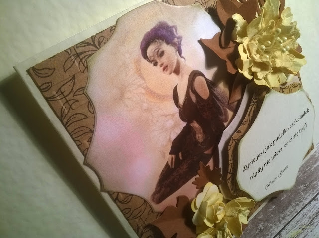 No i zdążyłam.Oto kartka na trzecie i ostatnie wyzwanie urodzinowe na blogu Rapakivi. Tematem była kartka z pozytywnym przesłaniem,lub sentencją.A moje brzmi:,,Życie jest jak pudełko czekoladek nigdy nie wiesz,co jest w środku".Ja bardzo lubię czekoladki,a niespodzianki jeszcze bardziej.